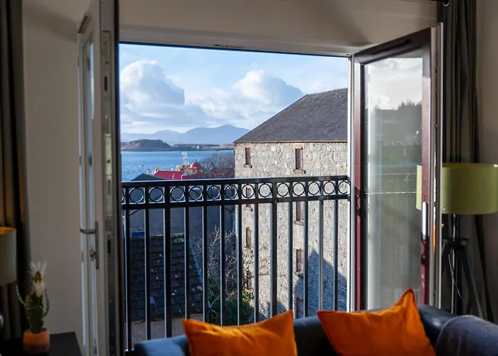 Along with coffee/tea making equipment, a fully-fitted kitchen is provided in the Oban villa for cooking purposes. There is also a microwave, a fridge, and glassware available in the kitchen. British cuisine is served at Bridge Cafe, which is located a minute away from the Oban accommodation. Oban bus station is located merely 350 metres from Ledaig Apartment, allowing a good connection throughout the city.